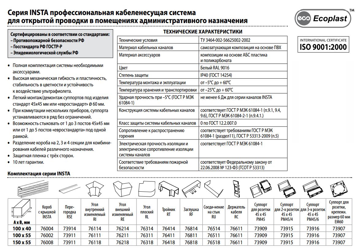 Аксессуары для кабель-канала серии INSTA