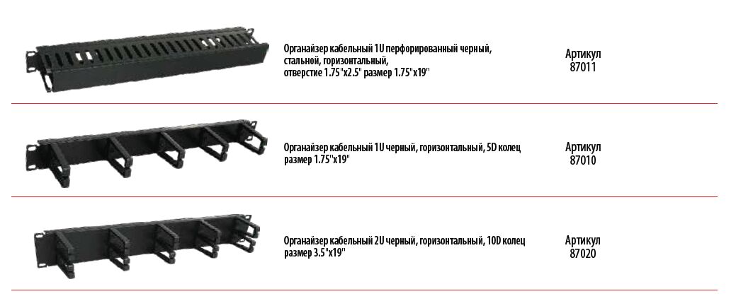 | E-87011 | Органайзер кабельный 1U перфорированный черный, горизонтальный | 10 шт/уп | 984.84 руб/шт | 886.50 руб/шт |