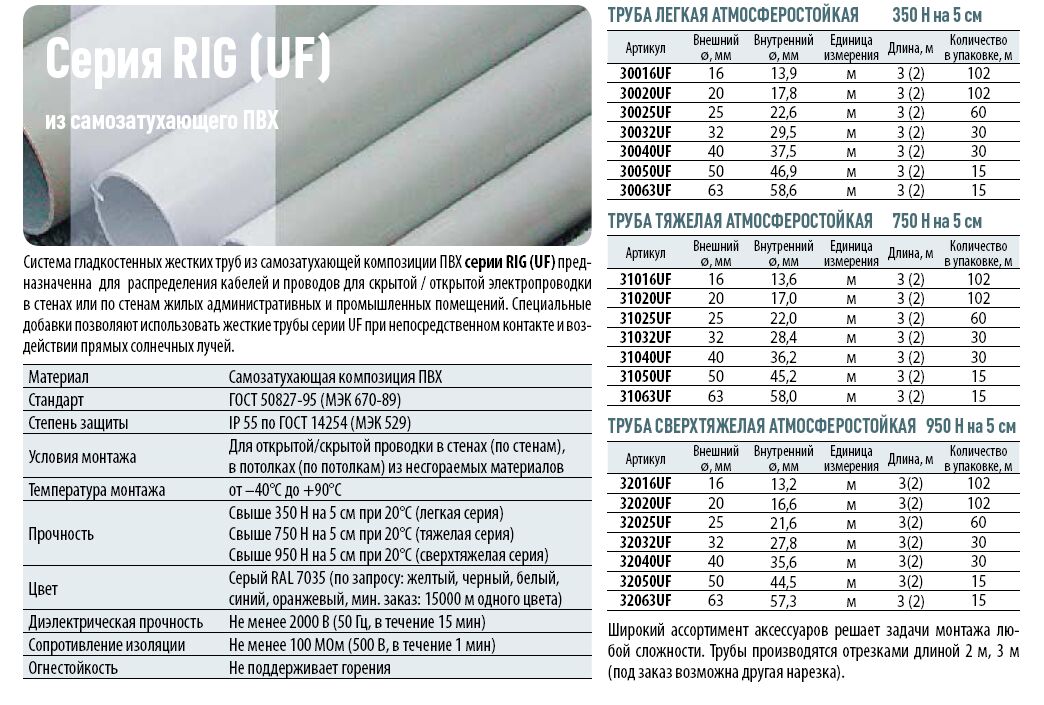 Труба ПВХ-UF жесткая, самозатухающая, легкая, атмосферостойкая, RIG-UF