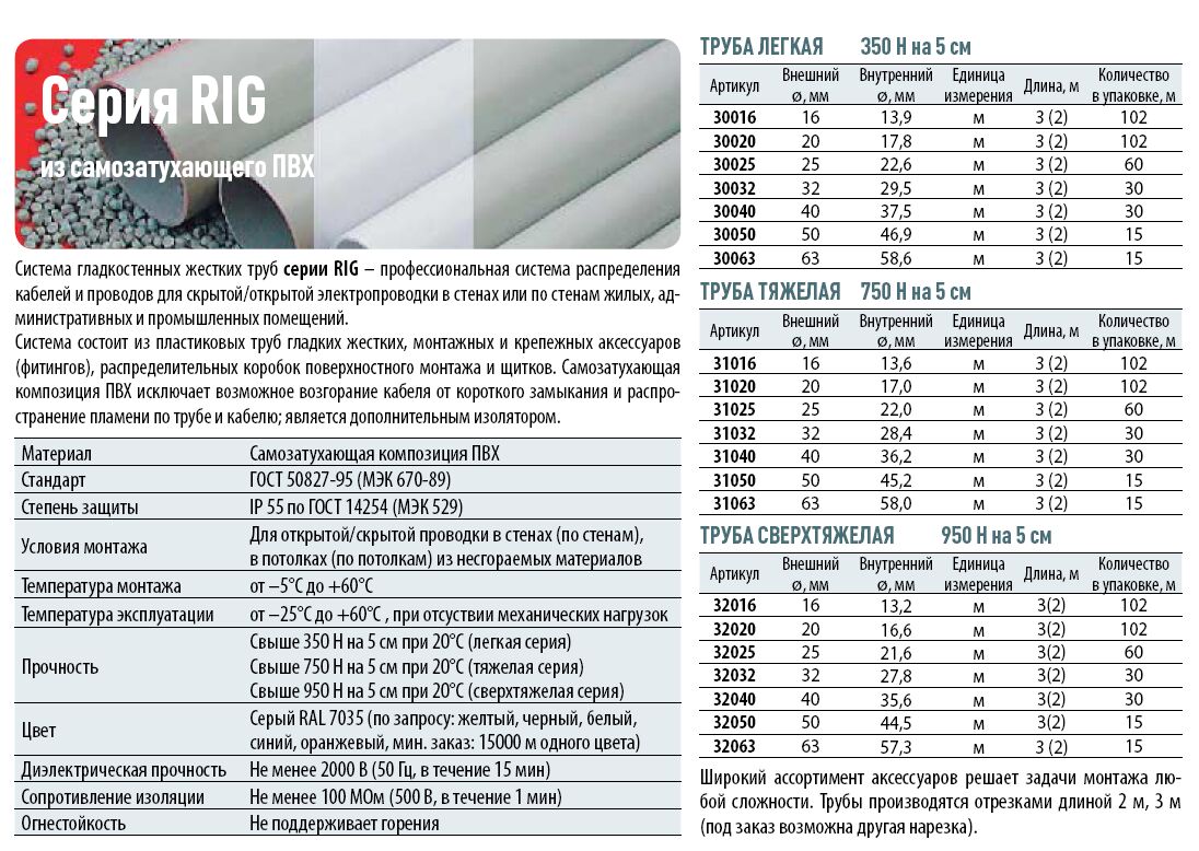 Труба ПВХ жесткая легкая (самозатухающая), серия RIG