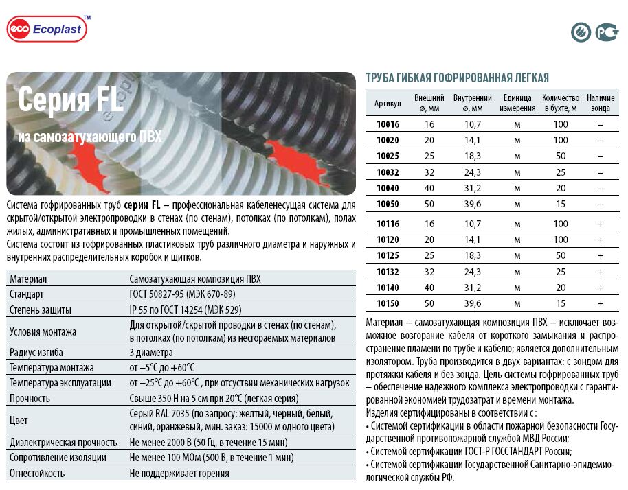 | Е-10050 / 10150 | Труба ПВХ гофр. легкая, д 50 мм (без зонда) / (+ зонд) | 15 м/уп | 90.52 / 96.30 | 81.47 / 86.67 |