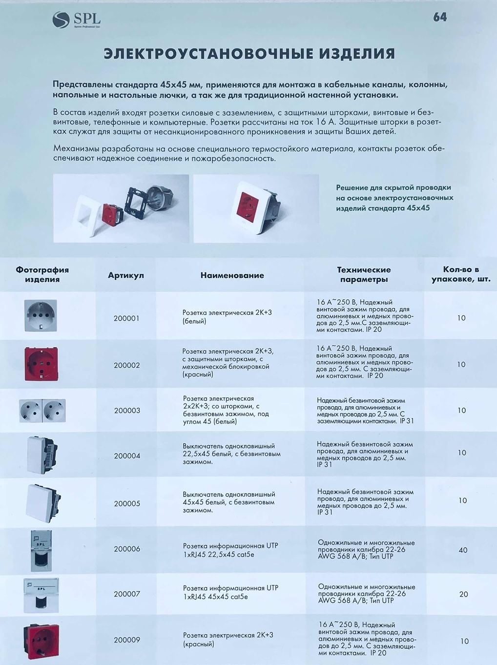 Механизмы в кабель-канал SPL (аналог Mosaic 45)